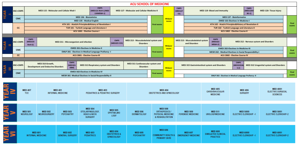 The education program of Acıbadem University School of Medicine consists of distinctive, complementary components within a competency-based, integrated, and student-centered structure.