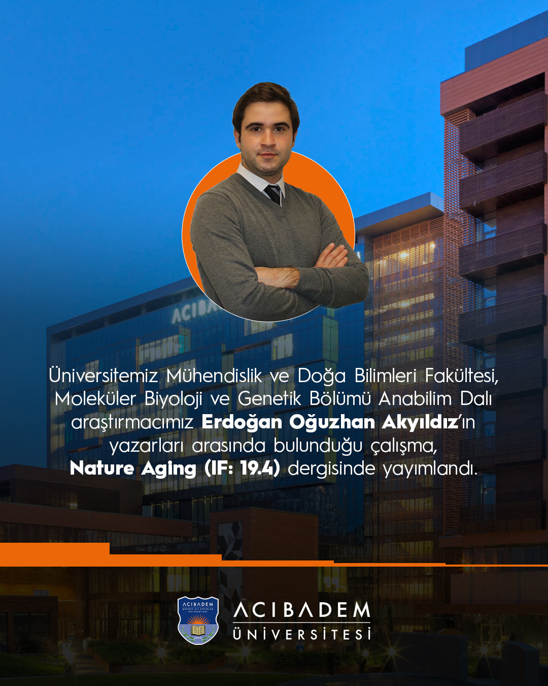 Üniversitemiz Mühendislik ve Doğa Bilimleri Fakültesi, Moleküler Biyoloji ve Genetik Bölümü Anabilim Dalı araştırmacımız Erdoğan Oğuzhan Akyıldız’ın yazarları arasında bulunduğu çalışma, Nature Aging (IF: 19.4) dergisinde yayımlandı.