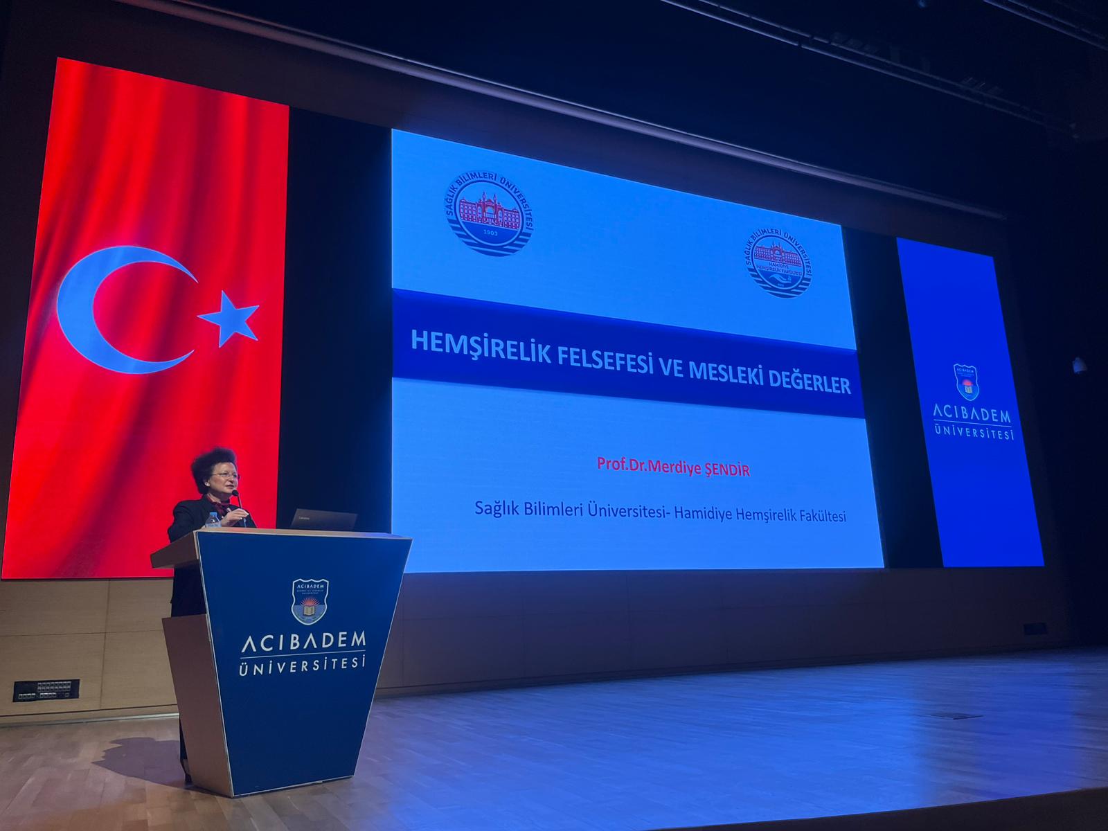 Following the opening, Prof. Dr. Merdiye Şendir, Advisor to the Rector of the University of Health Sciences and Head of the Department of Fundamentals of Nursing, gave a presentation titled “Nursing Philosophy and Values.”