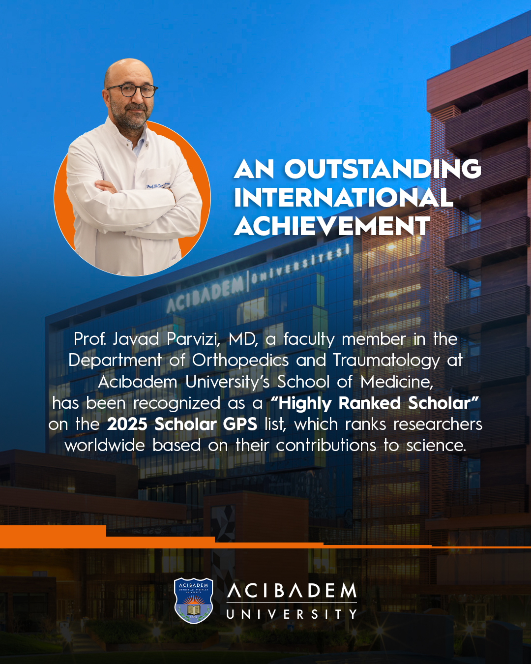 Prof. Javad Parvizi, MD, a faculty member in the Department of Orthopedics and Traumatology at Acıbadem University’s School of Medicine, has been recognized as a “Highly Ranked Scholar” on the 2025 Scholar GPS list, which ranks researchers worldwide based on their contributions to science.
