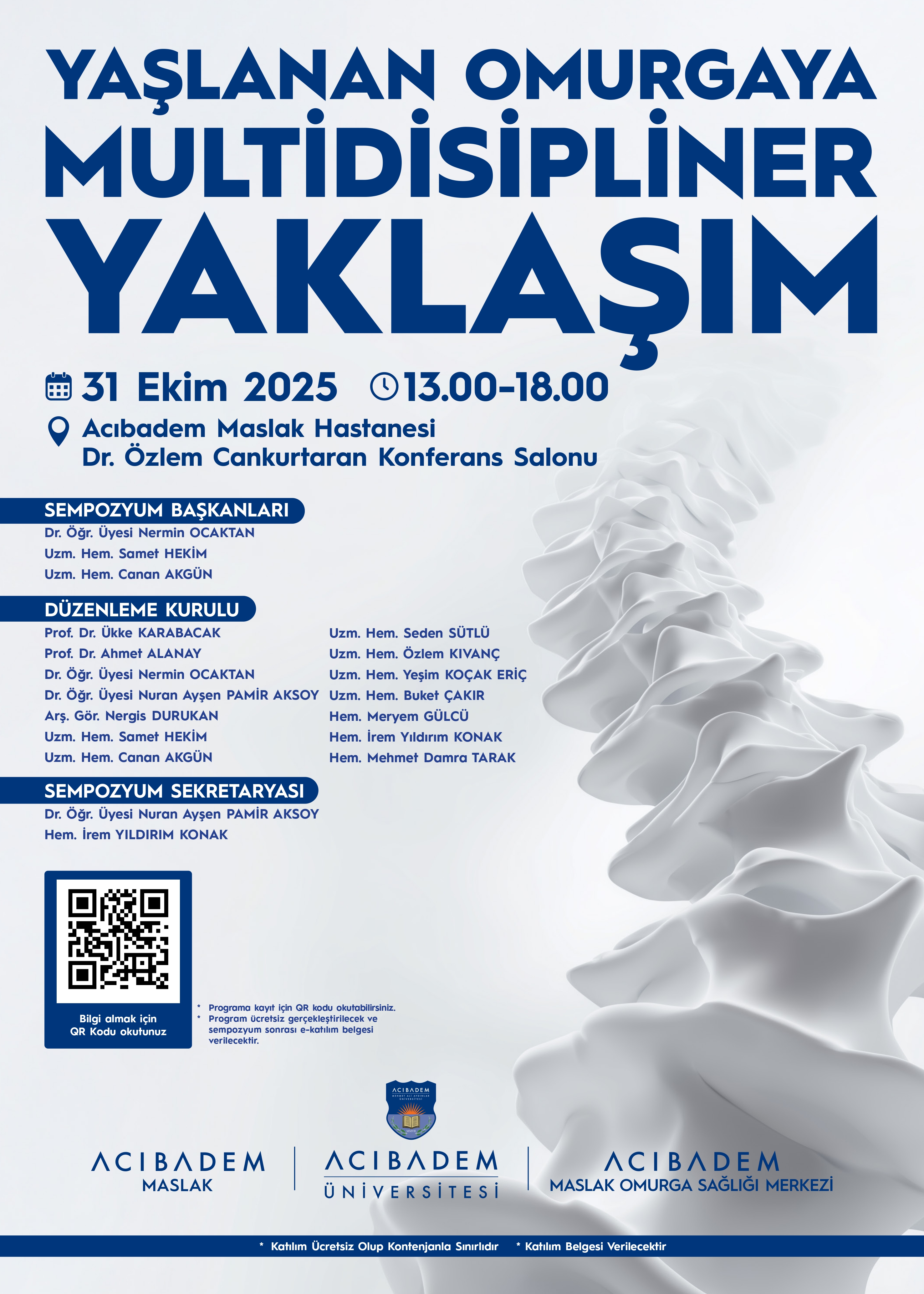 The “Symposium on Multidisciplinary Approach to the Aging Spine”, organized in collaboration with the Department of Nursing at Acıbadem Mehmet Ali Aydınlar University Faculty of Health Sciences, Acıbadem Health Group Maslak Hospital, and the Acıbadem Maslak Spine Health Center, was held on October 31, 2025, at the Dr. Özlem Cankurtaran Conference Hall, Acıbadem Maslak Hospital.