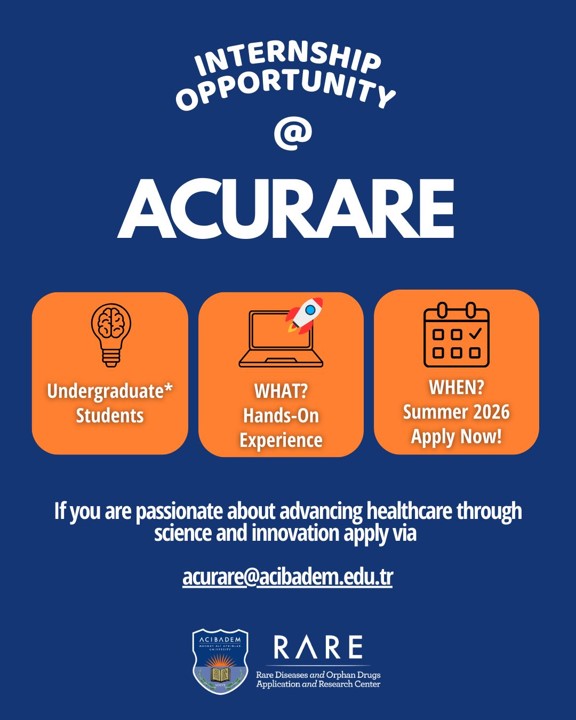 ACURARE (Nadir Hastalıklar ve Yetim İlaçlar Araştırma Merkezi) bünyesinde, Tıp Fakültesi öğrencileri ile Moleküler Biyoloji ve Genetik, Biyoinformatik, Biyomedikal/Mühendislik veya Hesaplamalı Mühendislik bölümlerinin 4. sınıf öğrencilerine yönelik Staj Programı başladı.