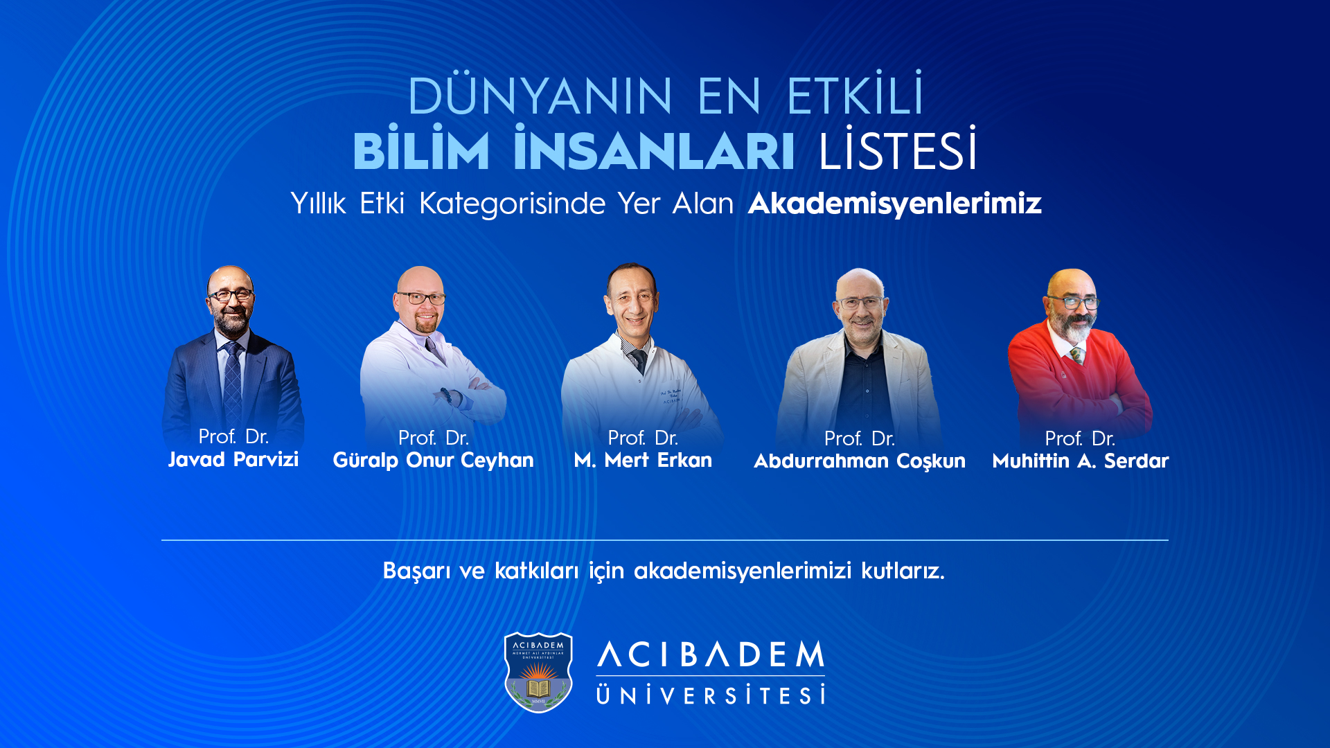 Akademik çalışmalarıyla üniversitemizi gururlandıran değerli hocalarımızı tebrik ediyor, başarılarının devamını diliyoruz.