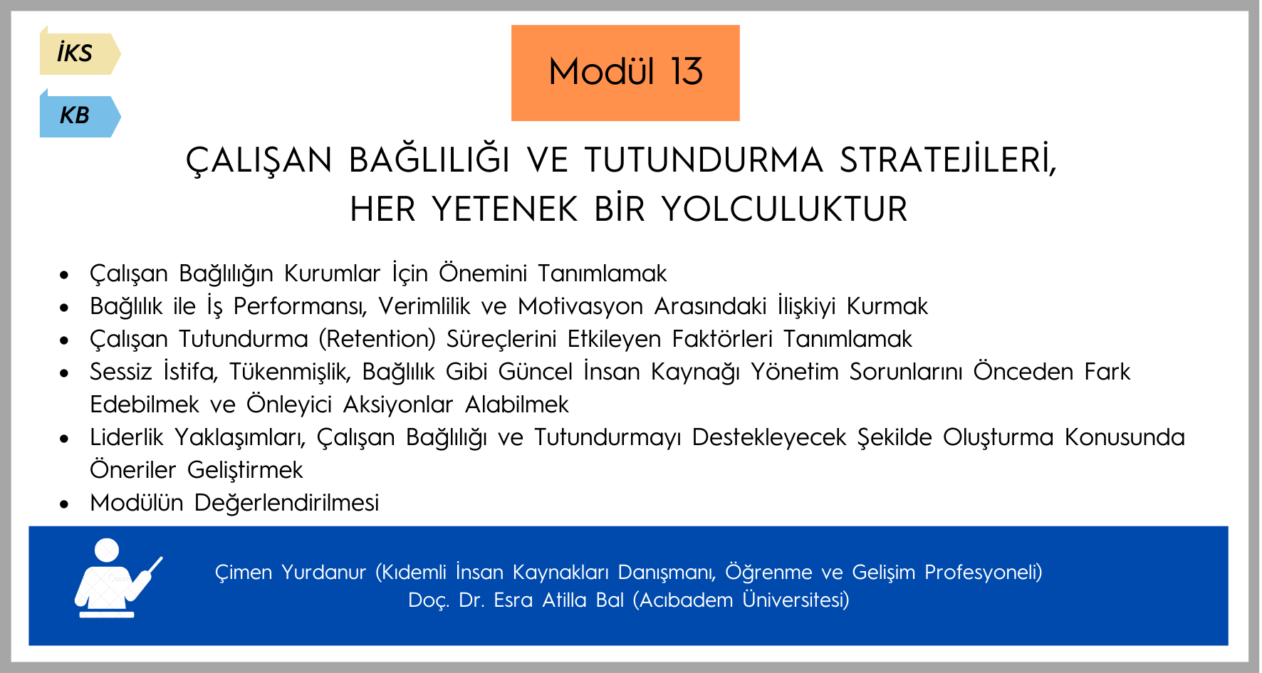 Modül 13 - Çalışan Bağlılığı ve Tutundurma Stratejileri, Her Yetenek Bir Yolculuktur. | Ön Başvuru FormuASEGEM Programıdır. |
